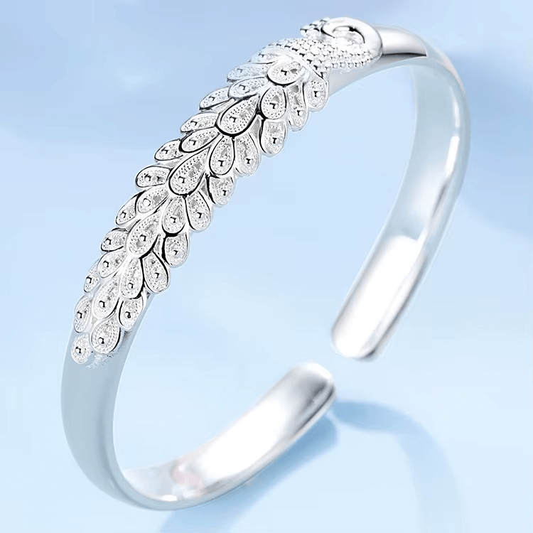 Unveil your inner elegance with the Elegant 925 Silver Peacock Open Bangle Bracelet, a masterpiece designed for women who adore luxury, grace, and timeless charm. Crafted from high-quality 925 sterling silver, this exquisite bangle captures the beauty of a peacock’s open screen — a symbol of confidence, beauty, and freedom.