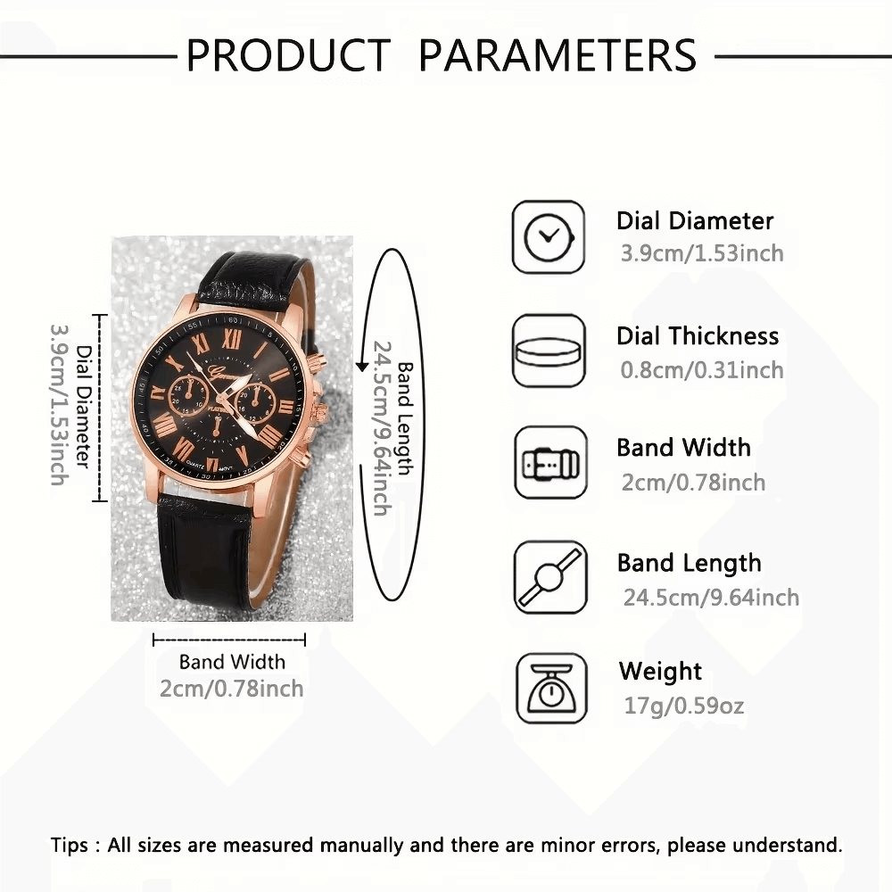 From office meetings to casual outings or weekend sports activities, the Women’s Fashion Sports Quartz Watch Set suits all occasions. The stylish Roman numeral dial adds sophistication, while the sporty leather band ensures comfort and ease of use. It’s also a thoughtful gift choice for birthdays, anniversaries, or special celebrations.